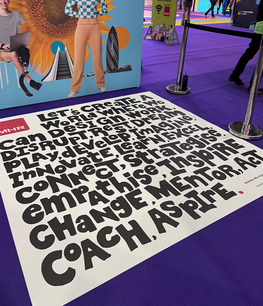 For this project, I led the creative direction for MHR’s exhibition stand at the Festival of Work event, a last-minute project with a tight budget.